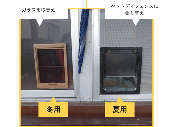今までは寒い思いをしていましたが、取付け後は出入り口が2つになり、夏と冬で使い分けが出来るようになりました。気になっていた隙間もなくなりました。