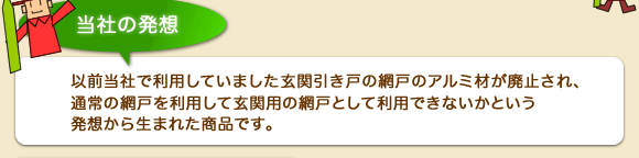 玄関等は出入りが多いため、そのまま利用したのではいつも手をかけてしまうところの網戸が 破れやすくなります。